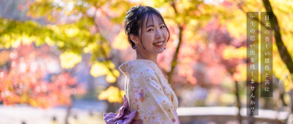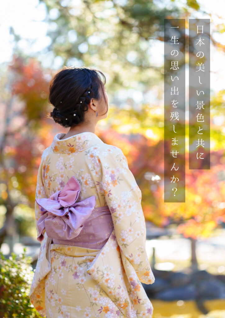 お着物の着付けが終わりましたら、着付けスタジオにてカメラマンと合流し、お客様ご希望の撮影場所にて撮影を開始します。